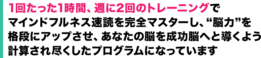 マインドフルネス速読は98.3%の方が、たった1回のトレーニングで読書スピードが2倍になっている効果実証済みのメソッドです。