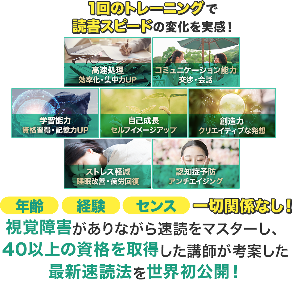 98%以上の方の読書スピードが2倍になった効果実証済のメソッドです。