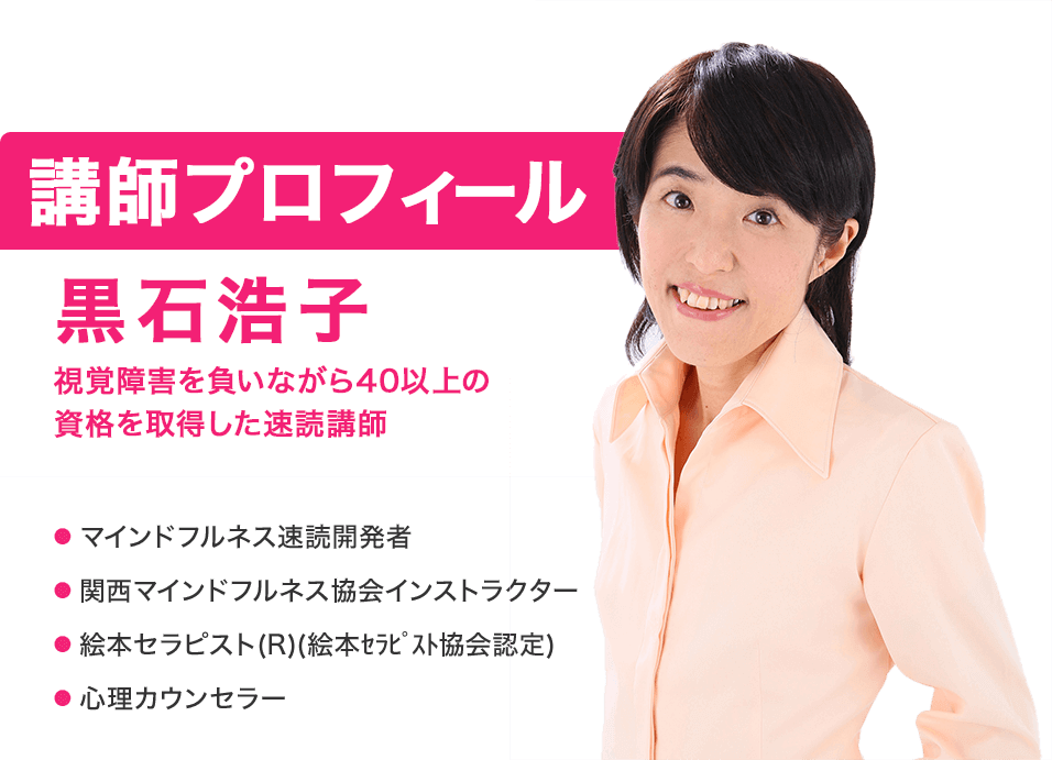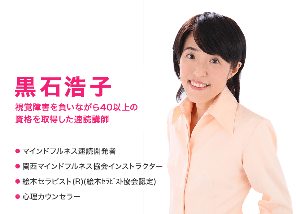 マインドフルネス速読講師の黒石浩子(くろいしひろこ)です。
