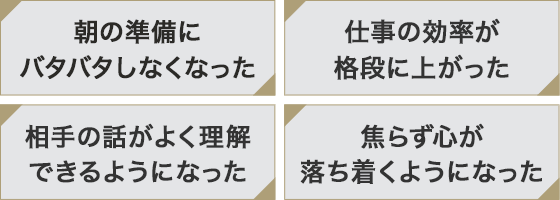 ほかにも仕事やスポーツで結果が出せたり、コミュニケーションがうまくなったりと、